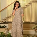 Beige Cotton Maxi Dress with Swirl Print. Designed with a contemporary yet comfortable silhouette, this dress is crafted from breathable cotton, making it ideal for long hours of wear. The unique swirl print in ivory tones adds a modern flair, while the V-neckline and half sleeves keep the look minimal yet stylish.