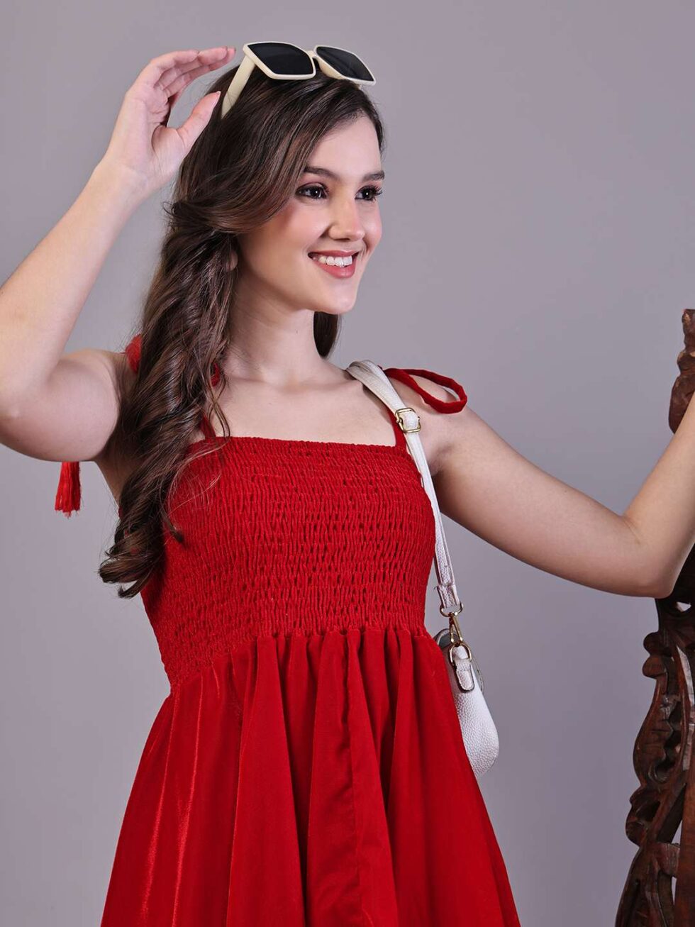 Effortlessly stylish dress with a vibrant abstract print, tie-up shoulder straps, and a chic high-low handkerchief hemline ? perfect for casual days or evening gatherings.