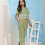Women’s Cotton Embroidered Crop top Co-Ord Set Coordinate Set Summer Wear Printed Crop Top with Pant Set