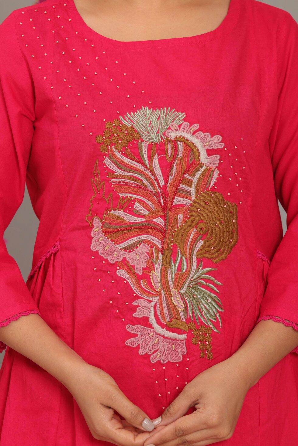 Women’s Cotton Embroidery Straight Kurti With Pant Set