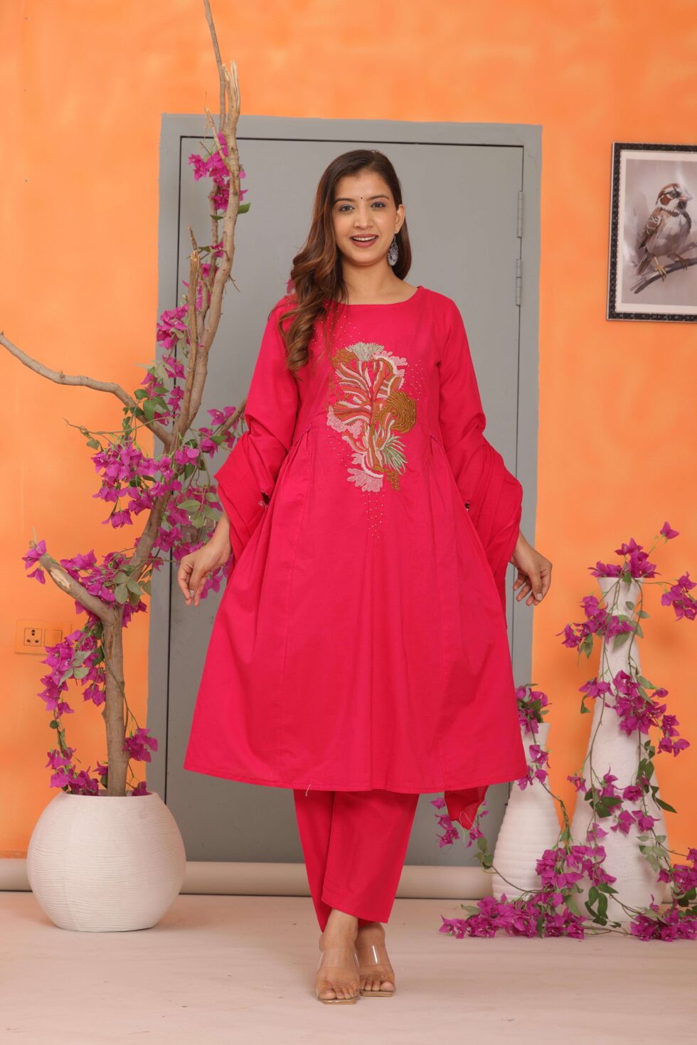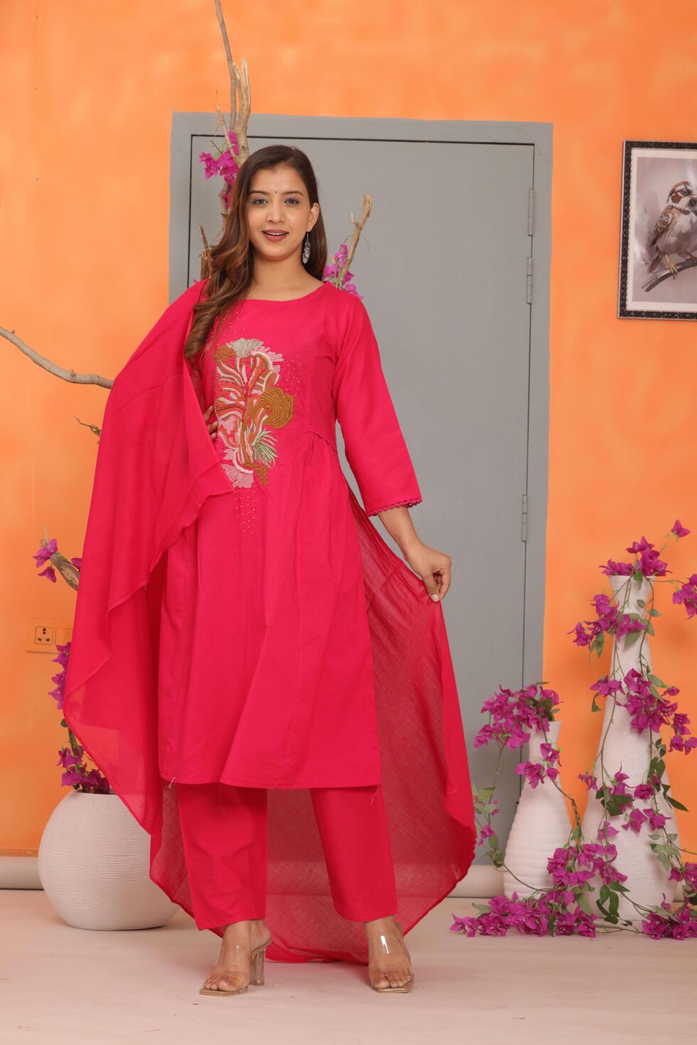 Graceful 3 Piece Kurti with Pant and Dupatta Set, blending tradition with modern style. Perfect for festive occasions, office wear, or casual outings, this outfit ensures comfort and an effortlessly classy look all day.