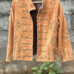 Womens Gold Velvet Embroidered Jacket with Floral Design