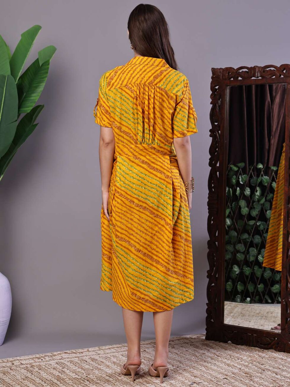 Women’s Yellow Printed Cotton Shirt Dress